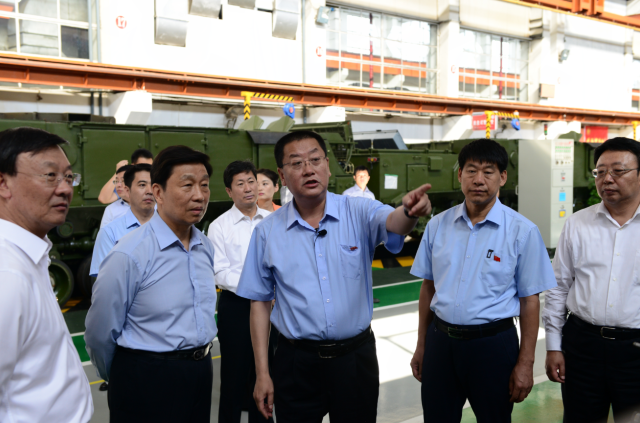 圖為李源潮(左二)在一機集團調研。 9月3日下午,中共中央政治局委員、國家副主席李源潮在內蒙古自治區黨委副書(shū)記、政法委書(shū)記李佳,包頭市委副書(shū)記、代市長(cháng)趙江濤等陪同下到中國兵器工業(yè)集團內蒙古第一機械集團有限公司調研。 調研過(guò)程中,一機集團董事長(cháng)、黨委書(shū)記白曉光向李源潮詳細介紹了一機集團60多年來(lái)的發(fā)展歷程、獲得的主要榮譽(yù)和軍民品結構等方面情況以及信息化管理和智能制造在總裝生產(chǎn)線(xiàn)上的應用情況。李源潮邊聽(tīng)介紹邊不時(shí)地插話(huà)詢(xún)問(wèn),了解企業(yè)的人員總量、各種產(chǎn)品技術(shù)性能特點(diǎn)、生產(chǎn)管理水平等情況。當了解到一機集團作為我國唯一的主戰坦克和8×8輪式戰車(chē)研制生產(chǎn)基地,并為我國裝甲裝備的建設做出了重要貢獻后,連聲說(shuō):“你們一機了不起,很了不起?!?/p> 來(lái)到國家級技能大師工作室駐軍品總裝工作站,李源潮與技能大師盧仁峰和張學(xué)海親切握手交談。當得知大國工匠盧仁峰在克服自身殘疾的情況下不僅練就了精湛的焊接技藝,而且還為公司培養了許多年輕的焊接技術(shù)人才時(shí),高興地握著(zhù)盧仁峰的手說(shuō):“好啊,你很不容易啊,大家都要向你學(xué)習?!崩钤闯边€親切地詢(xún)問(wèn)了工作站每一位青年職工的學(xué)習、工作、生活情況??吹竭@些青年職工飽滿(mǎn)的精神狀態(tài)時(shí),李源潮動(dòng)情地說(shuō):“勞動(dòng)者最光榮,你們是第一線(xiàn)的勞動(dòng)者,是真正為國家做出貢獻和創(chuàng )造價(jià)值的。你們年輕人一定要把大國工匠和勞動(dòng)模范的班接好,為企業(yè)、為國家多做貢獻?!?/p> “你們公司現在有多少名團員青年,平時(shí)團組織都有什么活動(dòng)?”在五分公司503車(chē)間團支部建設園地前,李源潮仔細詢(xún)問(wèn)了解一機集團的共青團工作開(kāi)展情況。他還非常認真地從公司團干部手機中仔細了解了一機集團團委落實(shí)團中央“1+100”團干部聯(lián)系青年制度的開(kāi)展情況,勉勵團干部改進(jìn)作風(fēng),更好地直接聯(lián)系服務(wù)青年。 在總裝生產(chǎn)線(xiàn),李源潮興致勃勃地登上公司最新研制生產(chǎn)的99A坦克,向白曉光詳細詢(xún)問(wèn)了坦克自動(dòng)裝彈系統、防護性能、火炮威力等各項戰技指標情況。 在五分公司觀(guān)禮臺前,三輛不同型號鐵甲戰車(chē)轟鳴著(zhù)駛過(guò),李源潮高興地不停鼓掌。隨后,李源潮還認真了解了現場(chǎng)擺放的各種型號的裝甲戰車(chē)的有關(guān)情況。 調研結束時(shí),李源潮握著(zhù)白曉光的手說(shuō),“謝謝一機集團的干部職工為我國國防事業(yè)做出的重要貢獻,請代我向全體干部職工問(wèn)好”。(朱小萌)
