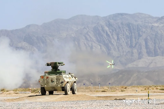 6輛紅箭-9反坦克導彈發(fā)射車(chē)快速占領(lǐng)陣地