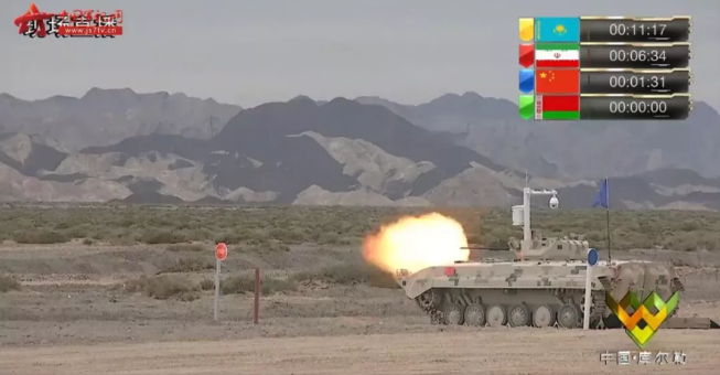 本次比賽,參賽隊需在4.3公里的賽道上通過(guò)11個(gè)障礙,并在三圈的比賽中分別射擊三種不同目標。中國三個(gè)車(chē)組在射擊環(huán)節中彈無(wú)虛發(fā),27個(gè)目標全部命中,是本日比賽射擊環(huán)節唯一全中的參賽隊。