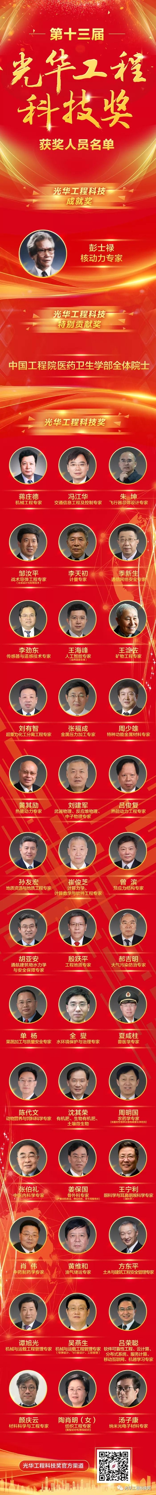 11月8日,第十三屆光華工程科技獎揭曉?xún)x式在北京隆重舉行。中國兵器工業(yè)集團有限公司科技委副主任委員、戰術(shù)導彈工程專(zhuān)家鄒汝平獲第十三屆光華工程科技獎(獲獎人員全名單及鄒汝平事跡附后)。 光華工程科技獎?dòng)芍袊こ淘褐鞴?,每?jì)赡觐C發(fā)一次,目前已是第十三屆,被譽(yù)為“中國工程界最高獎項”,極大地激勵了我國工程師、科學(xué)家從事工程科技研究、發(fā)展、應用的積極性和創(chuàng )造性。根據光華工程科技獎候選人提名要求,候選人需在重大工程設計、研制、建造、生產(chǎn)、運行、管理等方面解決關(guān)鍵科學(xué)技術(shù)問(wèn)題或在工程科學(xué)技術(shù)及工程管理領(lǐng)域有重要發(fā)現、發(fā)明,并有顯著(zhù)應用成效,或者是應用本人研究成果、發(fā)明創(chuàng )造,發(fā)展高新技術(shù)及相關(guān)產(chǎn)業(yè),成效特別顯著(zhù)者才可提名。今年,全國范圍內共產(chǎn)生了296名有效候選人。 此次揭曉?xún)x式正式公布了從296名候選人中評選出的第十三屆光華工程科技成就獎、光華工程科技特別貢獻獎以及光華工程科技獎的獲得者,最終僅有40位專(zhuān)家和1個(gè)團體獲獎。本屆光華工程科技獎的獲獎科學(xué)家們,緊密?chē)@國家重大戰略需求,瞄準經(jīng)濟建設和事關(guān)國家安全的重大工程科技問(wèn)題,緊貼新時(shí)代社會(huì )民生現實(shí)需求和軍民融合需求,加快自主創(chuàng )新成果轉化應用,為創(chuàng )新驅動(dòng)發(fā)展,建設科技強國,以及實(shí)現“兩個(gè)一百年”奮斗目標和中國夢(mèng)做出了重要貢獻。 獲獎人員全名單