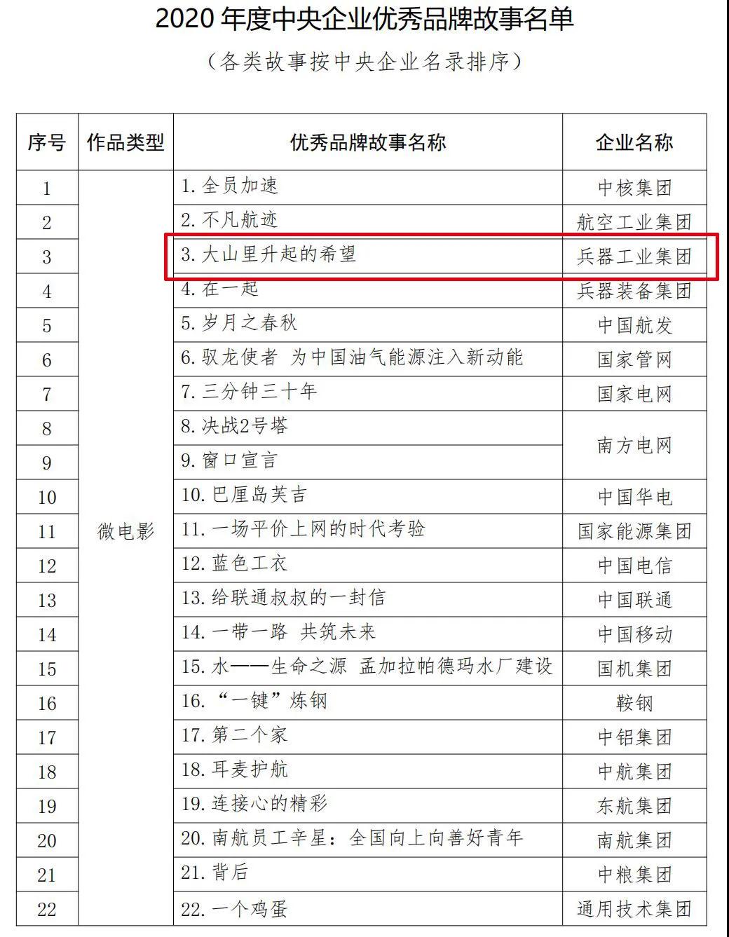 兵器工業(yè)集團品牌建設案例入選2020年度100個(gè)國有企業(yè)品牌建設典型案例和100個(gè)優(yōu)秀品牌故事 |