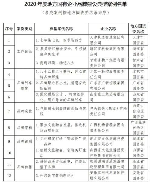 5月10日,由國家發(fā)展改革委等7部門(mén)和上海市政府共同主辦,國務(wù)院國資委特別支持的2021年中國品牌日活動(dòng)在上海舉辦。 活動(dòng)現場(chǎng),國資委指導舉辦了中國企業(yè)品牌建設分論壇,會(huì )上發(fā)布了《2020年度中央企業(yè)品牌建設發(fā)展報告》、2020年度100個(gè)國有企業(yè)品牌建設典型案例和100個(gè)優(yōu)秀品牌故事。中國兵器工業(yè)集團北重集團的“技術(shù)創(chuàng )新和商業(yè)模式創(chuàng )新并驅?zhuān)蛟熘褡宓V用車(chē)品牌”入選2020年度100個(gè)國有企業(yè)品牌建設典型案例,中國兵器工業(yè)集團北方公司的微電影《大山里升起的希望》入選2020年度100個(gè)優(yōu)秀品牌故事。 《2020年度中央企業(yè)品牌建設發(fā)展報告》分析了當前中央企業(yè)加強品牌建設的形勢要求,從戰略引領(lǐng)、專(zhuān)業(yè)運營(yíng)、支撐保障、組織管控、全球推廣5個(gè)方面總結了中央企業(yè)年度品牌建設進(jìn)展。 2020年度100個(gè)國有企業(yè)品牌建設典型案例和100個(gè)優(yōu)秀品牌故事,匯集企業(yè)優(yōu)秀經(jīng)驗做法,豐富國企品牌資源池,促進(jìn)企業(yè)相互學(xué)習借鑒,加快提高品牌管理專(zhuān)業(yè)化水平。 2020年度100個(gè)國有企業(yè) 品牌建設典型案例 來(lái)源/國資小新 |
