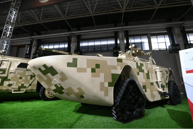 記者現場(chǎng)看到,眾多新型武器裝備已抵達兵器館。其中,兩棲無(wú)人戰車(chē)和輕型高機動(dòng)車(chē)載蜂群武器系統均為首次亮相。兩棲無(wú)人戰車(chē)可應對未來(lái)多元化兩棲任務(wù);輕型高機動(dòng)車(chē)載蜂群武器系統可執行偵察、區域封控、精確打擊、集群打擊毀傷評估等多樣化任務(wù)。
