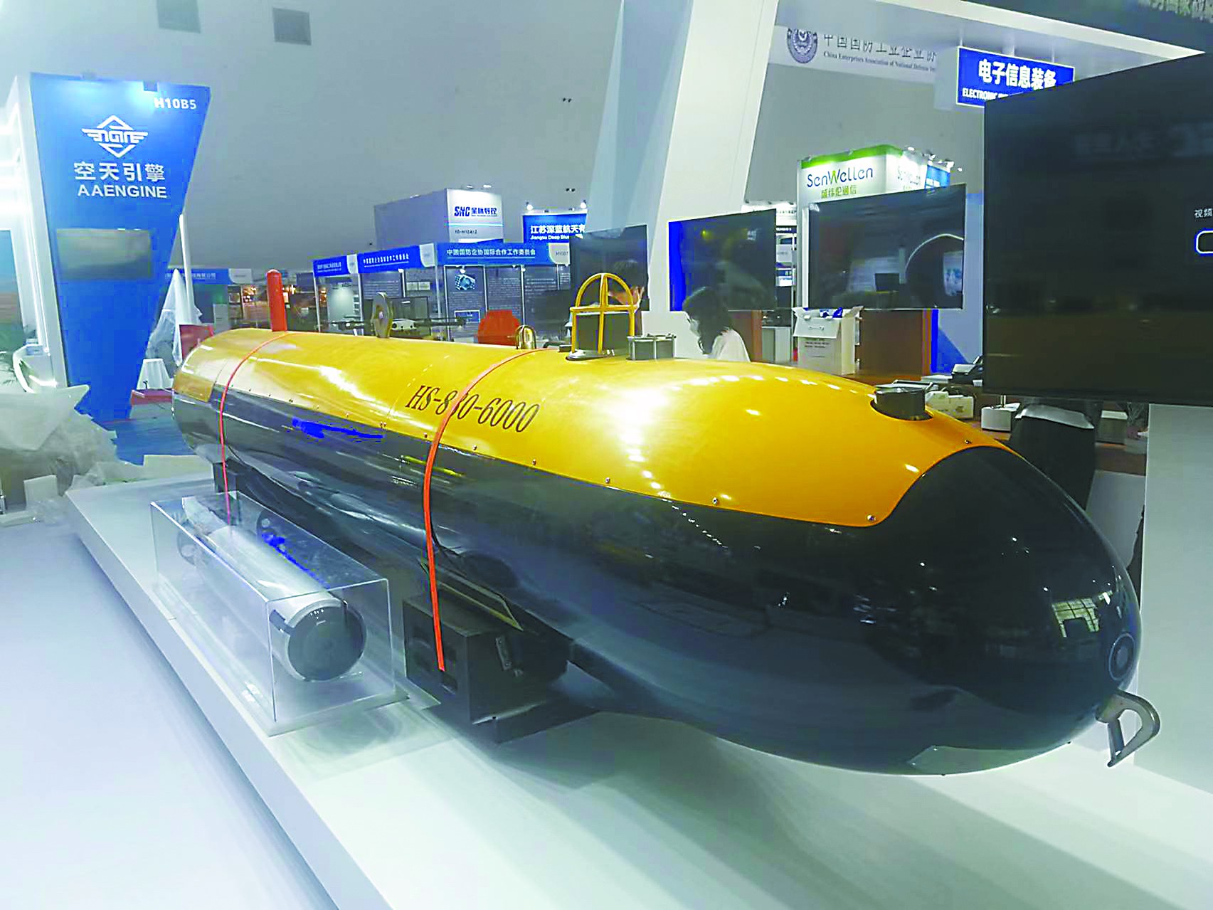 相比公眾相對熟悉的無(wú)人機和無(wú)人車(chē),無(wú)人船和無(wú)人潛航器的知名度略低,但本屆珠海航展上展出的相關(guān)裝備具備相當高的水平。例如HS-880-6000型自主式水下航行器(AUV)就是國內首型搜救型無(wú)人潛航器。它的最大工作深度達6000米,能以3節的速度連續航行24小時(shí),配備有深水遇險目標高分辨低照度照明系統、聲信標定向引導聲吶、水聲探測側掃聲吶等,具備工作水深范圍寬、載荷能力大、續航力長(cháng)、搜尋探測能力強等特點(diǎn),可對深海目標全自主精細搜尋、探測、定位,執行深海水下目標搜尋探測和海洋科學(xué)研究任務(wù)。另一款“守望者”無(wú)人潛航器個(gè)頭小巧,配備有光學(xué)探頭、戰斗部和通信設備,可以自動(dòng)靠近水中或海底目標進(jìn)行觀(guān)測、毀傷目標,用于執行反水雷、排障、海底管道巡檢等任務(wù)。