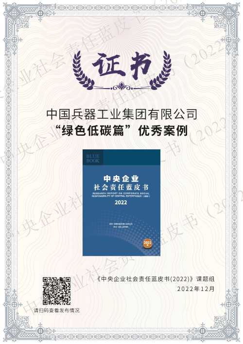 兵器工業(yè)集團綠色低碳案例入選《中央企業(yè)社會(huì )責任藍皮書(shū)(2022)》 |