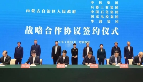 4月28日,中國兵器工業(yè)集團有限公司和內蒙古自治區政府在呼和浩特簽署戰略合作協(xié)議。內蒙古自治區黨委副書(shū)記、自治區主席王莉霞,集團公司黨組書(shū)記、董事長(cháng)焦開(kāi)河等有關(guān)中央企業(yè)主要負責同志出席并見(jiàn)證簽約。簽約以?xún)让晒抛灾螀^政府和有關(guān)中央企業(yè)集中簽約方式舉辦,集團公司黨組成員、副總經(jīng)理閆哲代表集團公司與內蒙古自治區政府簽約。