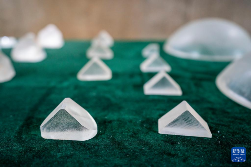 這是5月16日拍攝的中國光學(xué)歷史博物館內展出的玻璃元件。