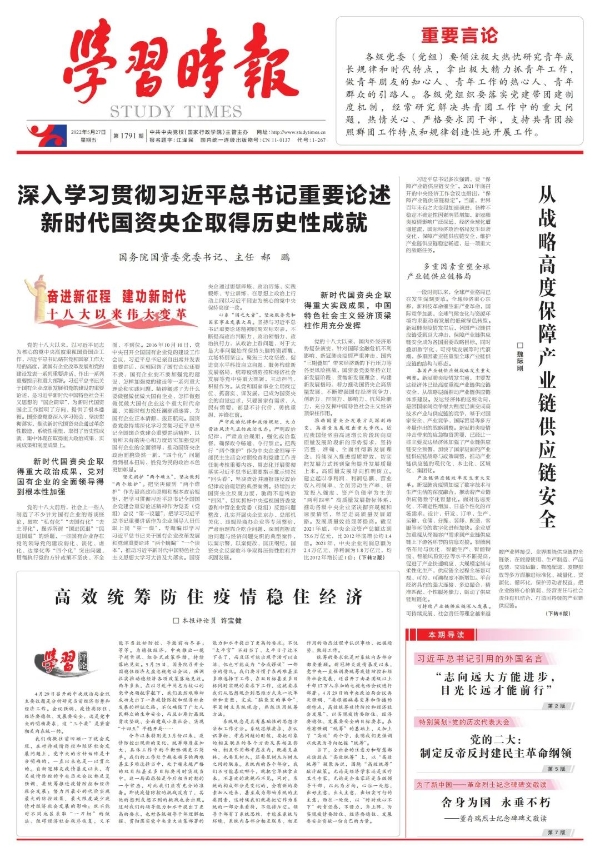 《學(xué)習時(shí)報》刊發(fā)郝鵬署名文章:深入學(xué)習貫徹習近平總書(shū)記重要論述 新時(shí)代國資央企取得歷史性成就 |