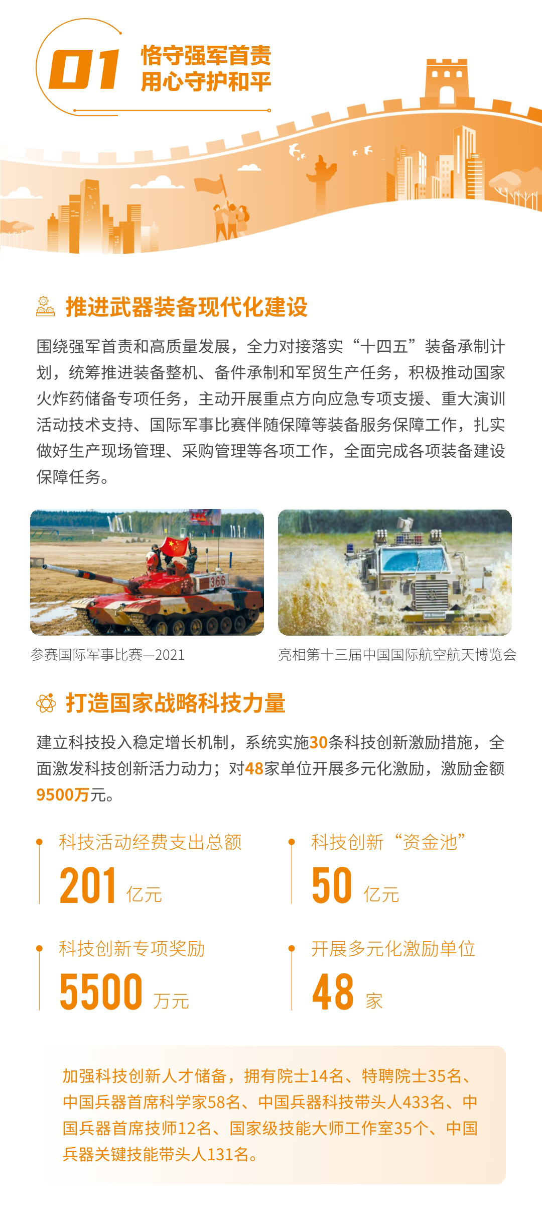 近日,兵器工業(yè)集團正式發(fā)布第十三份年度社會(huì )責任報告——《中國兵器工業(yè)集團有限公司2021年社會(huì )責任報告》,以“用心守護和平、用力爭創(chuàng )一流、用情溫暖社會(huì )”為主題,從恪守強軍首責、服務(wù)經(jīng)濟建設、共創(chuàng )美好生活三個(gè)維度,向社會(huì )全面披露2021年度履責實(shí)踐和履責業(yè)績(jì)?!秷蟾妗愤B續第三年獲得中國企業(yè)社會(huì )責任報告評級專(zhuān)家委員會(huì )“五星佳”評級,兵器工業(yè)集團成為軍工行業(yè)唯一連續11年獲得五星及五星佳最高評級的企業(yè)。 一圖解碼兵器工業(yè)的“責任力量” |