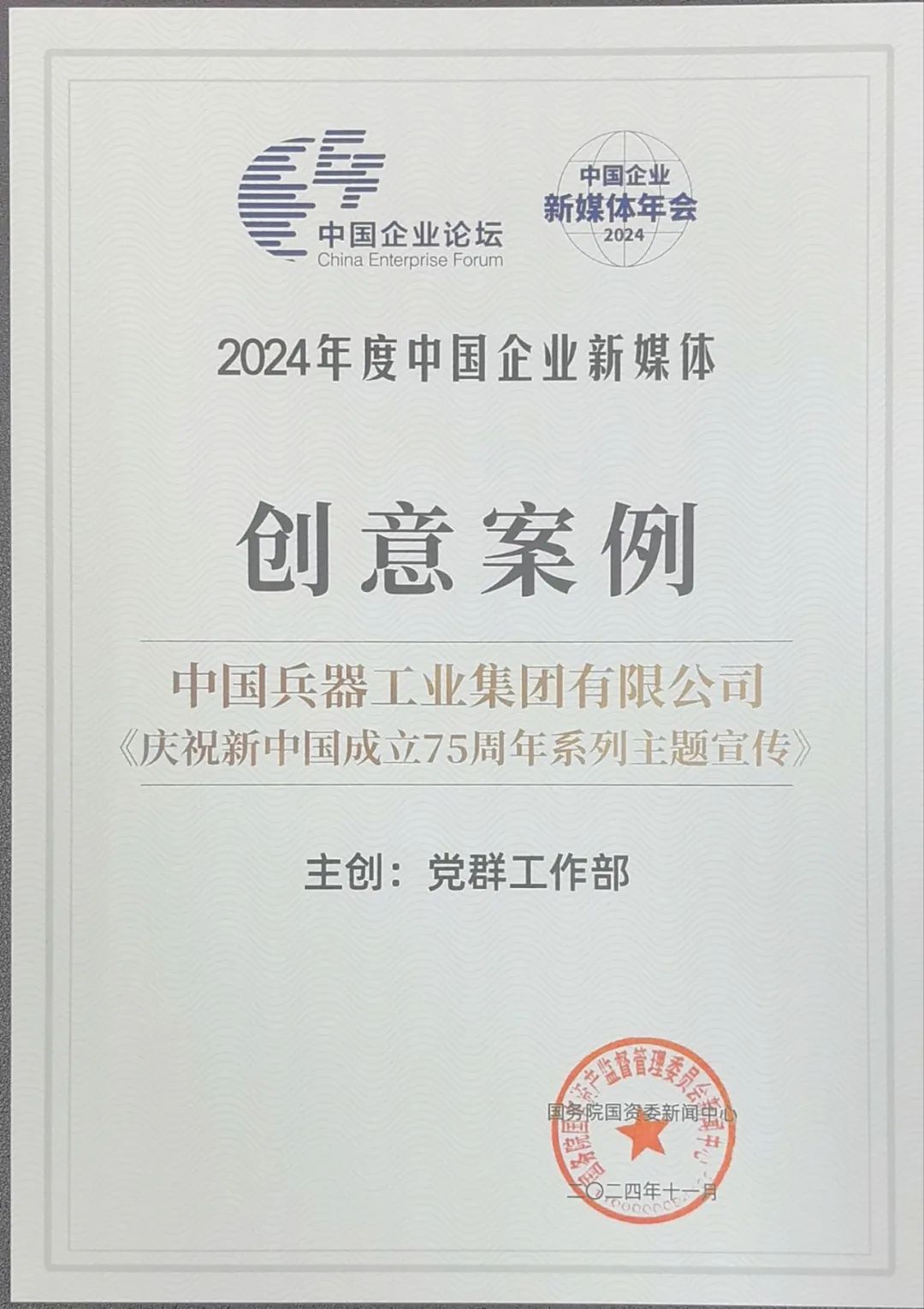 中國企業(yè)新媒體年會(huì )現場(chǎng)發(fā)布了“2024年度中國企業(yè)新媒體創(chuàng )新獎、創(chuàng )意獎、創(chuàng )作獎”,其中,集團公司《慶祝新中國成立75周年系列主題宣傳》榮獲2024年度中國企業(yè)新媒體創(chuàng )意案例。