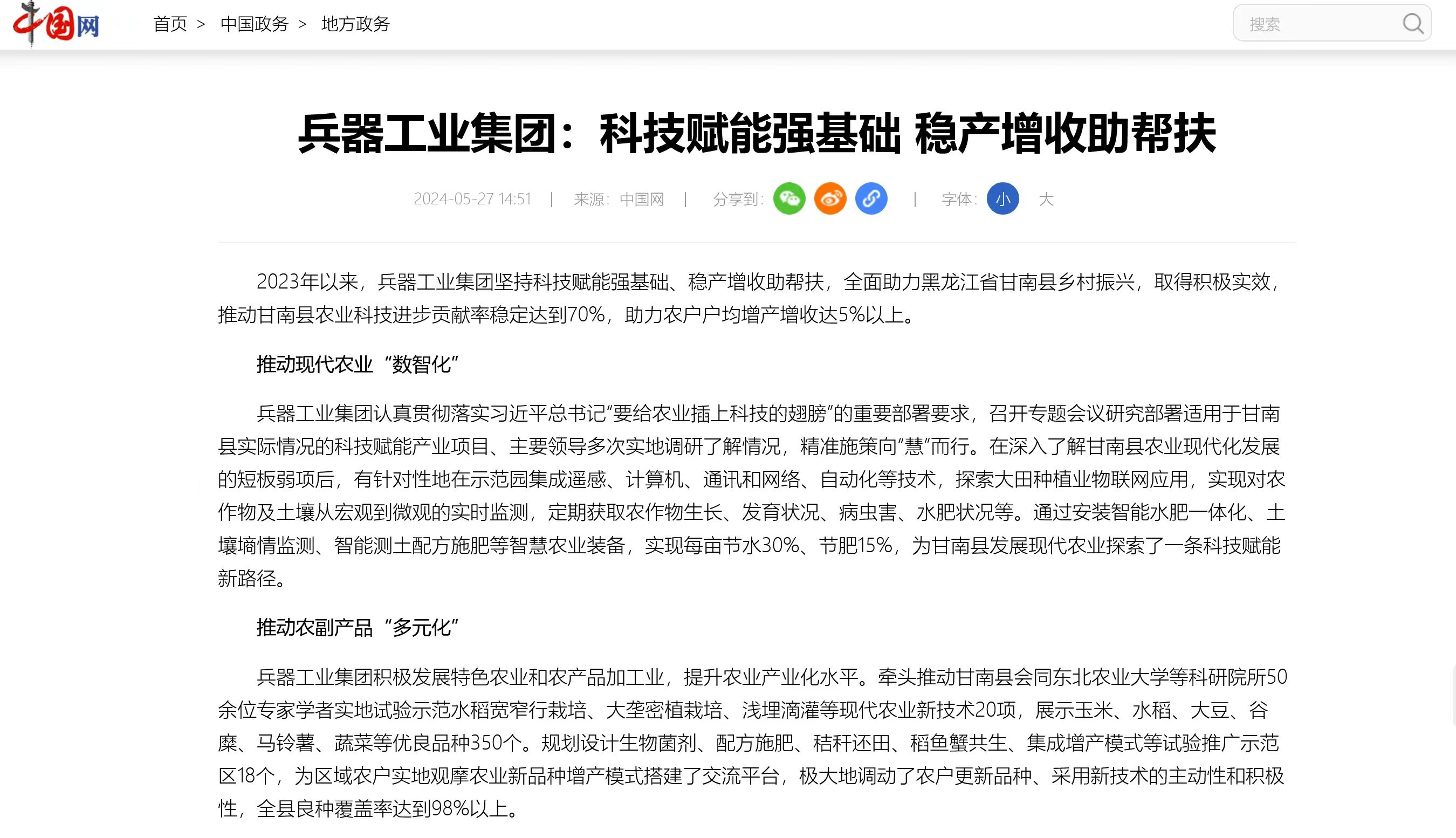中國網(wǎng)報道兵器工業(yè)集團科技賦能 助力黑龍江省甘南縣鄉村振興 |